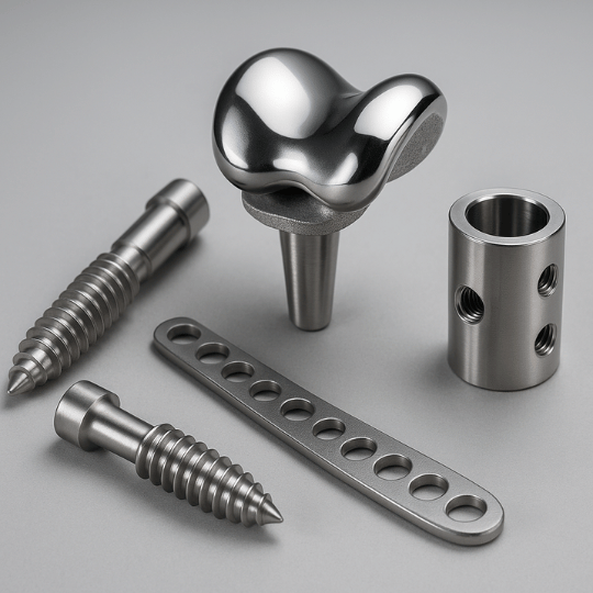 Titanium – Lightweight, corrosion-resistant, and ideal for long-term implantation, particularly in orthopedic and dental applications.